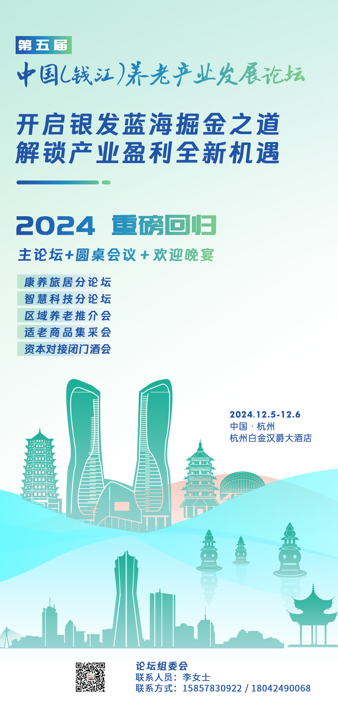 我们正式宣布:「2024第五届中国(钱江)养老产业发展论坛」将于12月5-6日正式举办,举办地点为杭州白金汉爵大酒店。