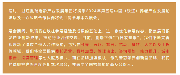 探蓝海、走花路!胤瑞携手2024第五届中国(钱江)养老产业发展论坛等即将亮相浙江(国际)康养产业博览会